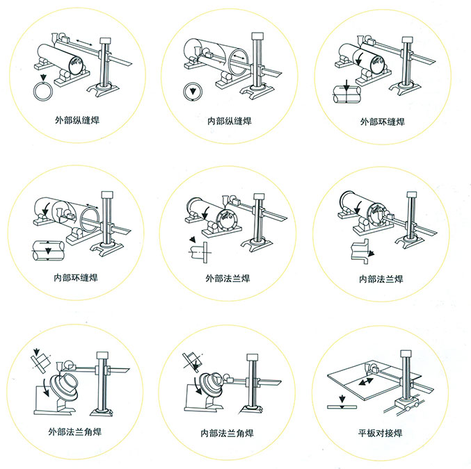 自動(dòng)焊接中心是由焊接操作機(jī)、焊接電源(自動(dòng)埋弧焊機(jī)、C02、TIG、MIG、帶極堆焊機(jī)等)和焊接滾輪架或變位機(jī)配套組合而成,廣 泛地應(yīng)用于鍋爐、壓力容器、石油化工、冶金建設(shè)、制冷設(shè)備、工程機(jī)械、船舶制造、電力建設(shè)等行業(yè)中各種焊縫及其它圓筒形構(gòu) 件的內(nèi)外縱縫和環(huán)縫的焊接。