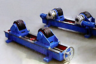 1.絲杠調(diào)節(jié)或螺釘分檔調(diào)節(jié),大噸位采用預(yù)留螺孔調(diào)節(jié)滾輪中心距,滿足工件筒體直徑大小變化。